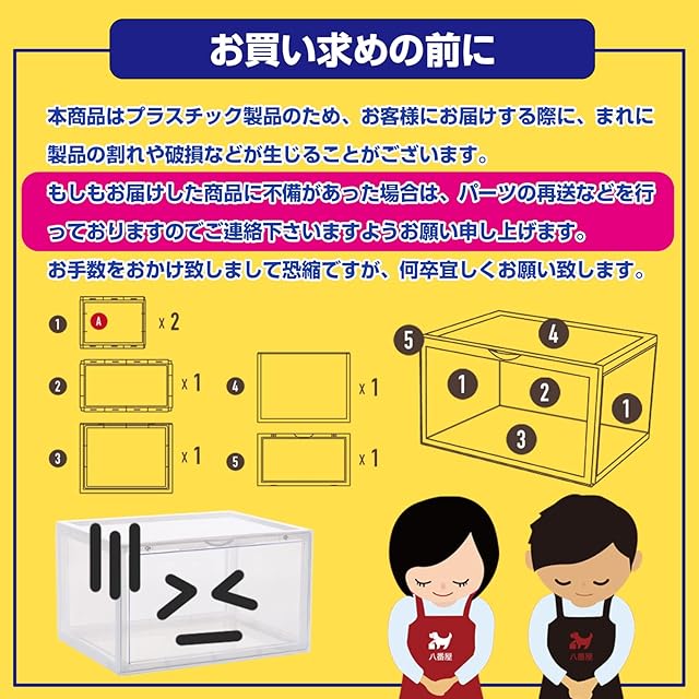 八番屋 シューズボックス クリア 透明 スニーカーボックス スニーカー 収納ボックス 収納ケース 靴ケース 靴 箱 棚 収納 ケース(クリア2個セット)