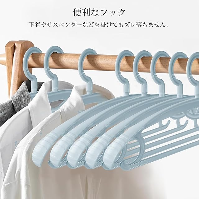 【360°回転フック&乾湿両用】フックは360°回転できます、掛けた服を回転して調整でき、どんな角度でもかけられます。さらに、ABS素材なので、濡れた服にも掛けられます。洗濯物にもピッタリ。(個体差によりフックが非常に強い商品もございます。一番細い部分に少し力を入れて「パチッ」と音がするまで回すとスムーズに回転します。)