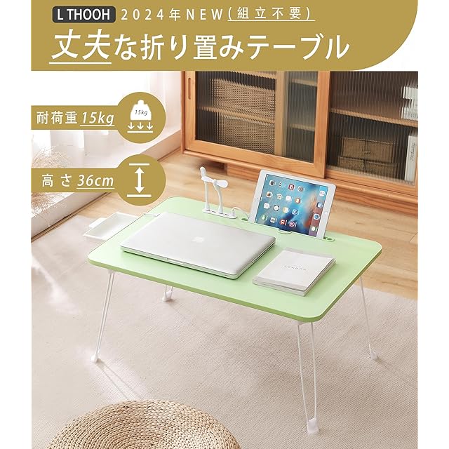 【2025年NEW多機能 折畳みテーブル 】(USB読書灯とファンが付属しています)ミニテーブル折りたたみ ローテーブル 折畳み 大容量表面 座卓 コーヒーテーブル 折畳み 机 ちゃぶ台 折畳み PCスタンド PCデスク完成品 軽量 学習 ベッド ソファ 食事 利用可 (グリーン, 長70*幅48cm( 引き出し))