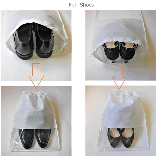 用途:キッズ レディースくつ、サンダル、衣類、タオル、ノート、小物、アクセサリーケース入れ、プレゼント用のギフトバッグにも。ご家庭での靴入れやご旅行の準備に便利な小分け袋に。収納や取り出しやすさを考えた透明窓付き不織布 巾着袋。また、お子様や赤ちゃんのお出かけの際の汚れた靴や服と新しい着替えを小分けしてバッグへ入れたい方などにも便利。汚れもの、きれいなものを分けて収納できます。※男性用靴入れならLサイズがおすすめ