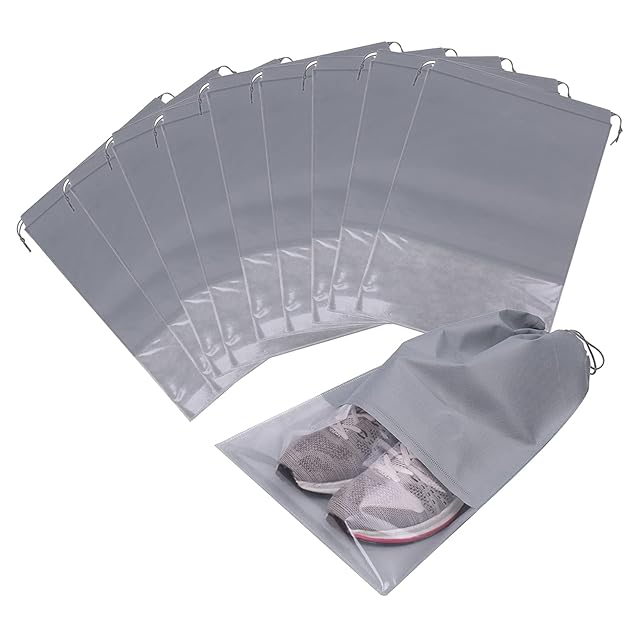 C-POSH 靴袋 巾着 不織布 シューズバッグ 収納袋 服入れ 透明窓付き 靴収納ケース (グレーL 10枚)