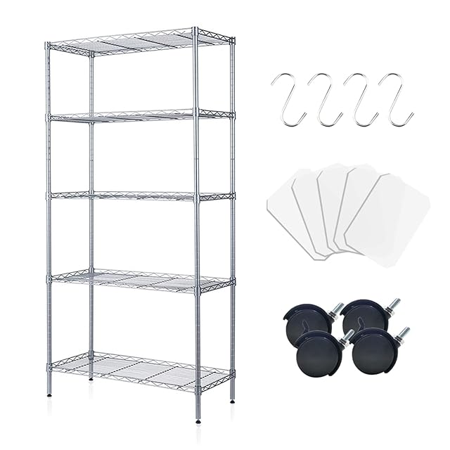 【商品仕様】本体:スチール(粉体塗装)サイズ:5段 幅60cm×奥行32cm×高さ150cm パーツ シート:フック*5 マット*5 キャスター*4 ★マットは物の落下を防ぐことができます。(購入前にサイズを確認してください)