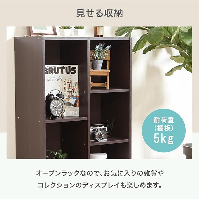 書籍や小物だけでなくA4サイズのファイルや雑誌なども入るフリーボックス。シックな色味と木目調のデザインでどんなお部屋にも馴染みます。