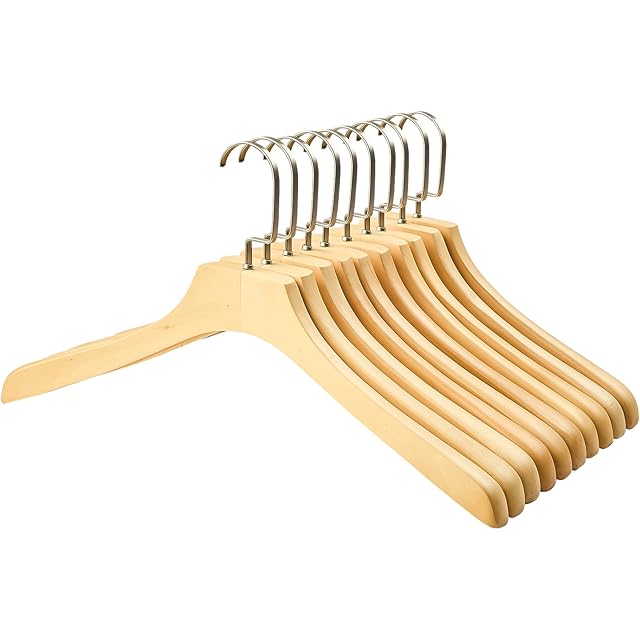 【人間工学設計】人間工学に基づいてデザインされていて、肩ラインに近くなっています。衣類の型崩れを防止して、シワをつけません。天然木のナチュラルクリアカラーで、自然とインテリアに溶け込みます。自然の質感とおしゃれさを兼ね備えたハンガーが衣類ケアにも優れています。