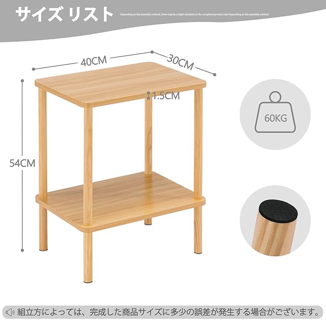 サイドテーブル ナイトテーブル 天然木 小さい おしゃれ 収納棚付き ベット用 リビング ソファサイド 一人暮らし カフェテーブル (40cm*30cm*54cm, ナチュラル)