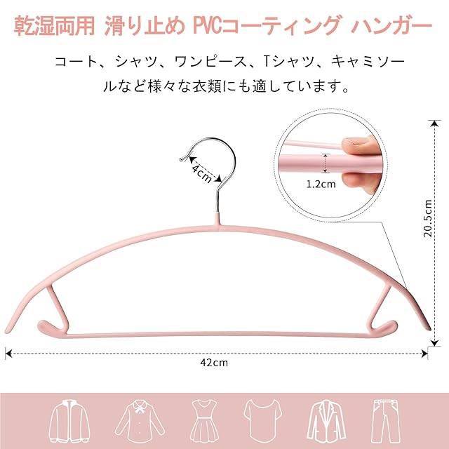 【安心の品質】ハンガーのサイズは幅42×高さ20.5×厚さ1.2cm、重量は110g。材質はPVC樹脂とステンレス鋼。ご不明点がございましたら、お気軽に弊店までお問い合わせください。