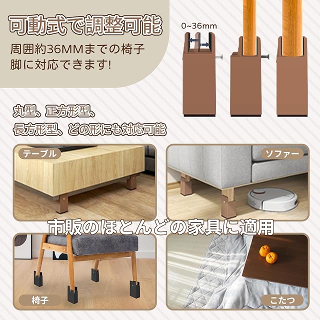 Athvcht テーブル 脚 継ぎ足し 高さ10cm上げる 継ぎ脚し テーブル・ベッド・こたつ 高さを上げる コタツ 足上げ 4個セット テーブル 脚上げ こたつ 継足し テーブル脚台 高さ上げる 家具 高さ調整器具 座椅子 ソファの高さ調節 丸型 正方形型 長方形型 家具脚に対応 幅調節可能 直径0cm~3.4cmに対応 取り付け簡単 継足し