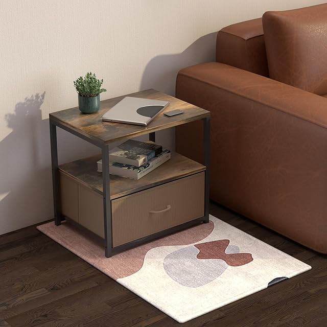 MAHOUYA サイドテーブル コーヒーテーブル ベッドサイドテーブルミニソファテーブル 収納ラック棚 引き出し1つ 組み立てが簡単です 寝室 リビングルームが適用 鉄と木材の製造 幅40×奥30×高40cm (H40, 茶色)