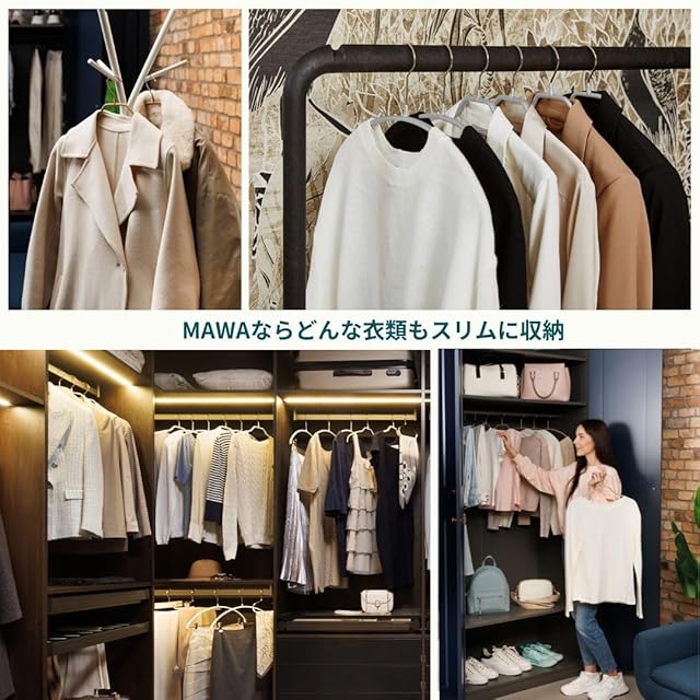 【収納力UP】シンプルでスリムデザインなのでクローゼットやハンガーラックで幅を取らずにたくさんかけられ、省スペース。ハンガーを統一する事で、見た目も美しく、スッキリ収納。ズボンやスカートを畳み跡や折り皺を付けずに収納できるので綺麗に保管する事が出来ます。