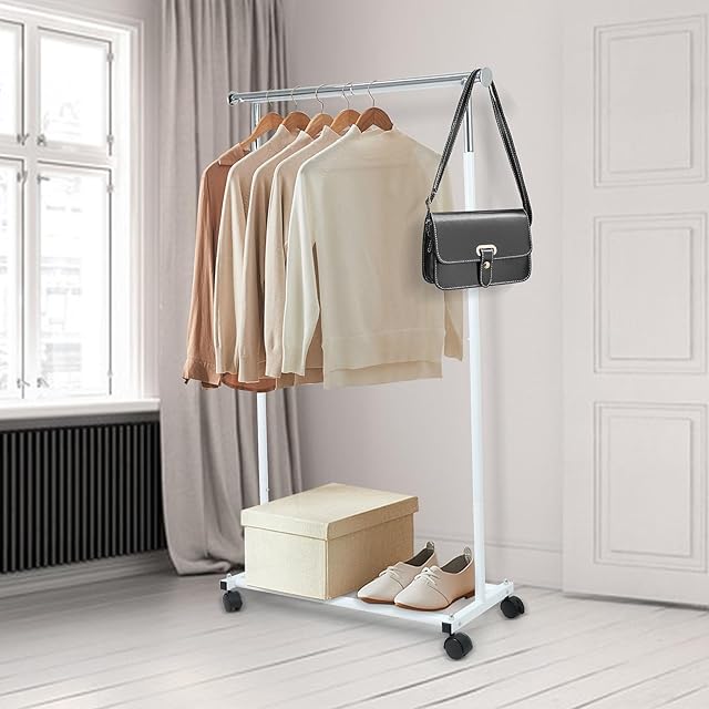 HANKEY ハンガーラック シングル メッシュ付き 高さ調整可 室内物干し キャスタ付き 黒