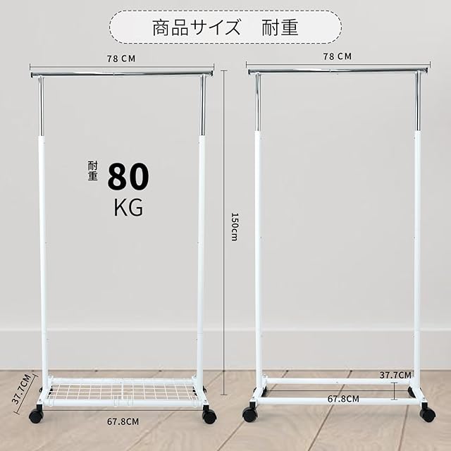 [サイズ・耐荷重] サイズ:幅 78CM×奥行 37CM×高さ150cm。耐荷重:80KG;色:白