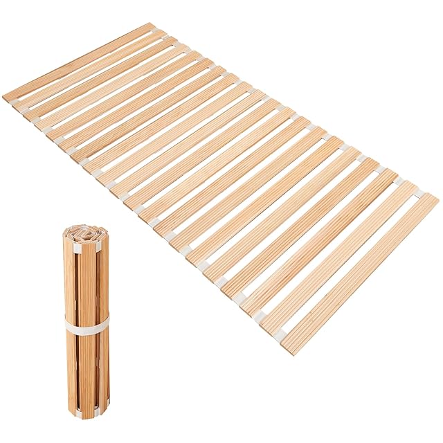 【コンパクトに収納と持ち運び楽】スノコ板は柔軟で丈夫な帯で接続されているので、ロールする事でスペースを簡単に開けられる。使わない時は、畳んでおくのも良し、クルクルと丸めても良し。軽い まとまって場所も取らない、持ち運びもラクラク、女性も持ち運び楽々。付属品:収納用のバンド1本、日本語取説と面取り補修用のサンドペーパーが付属します。