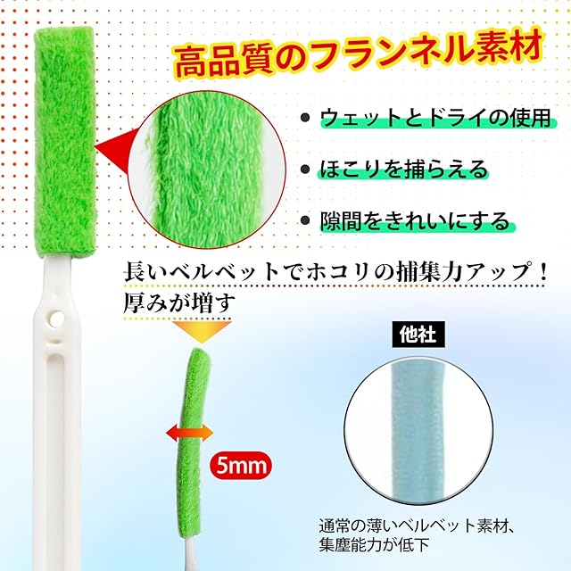 換気扇・エアコン掃除にオススメ:エアコン 掃除 ブラシは棒状なので細くて使いやすくて、緑色の生地部分が絶妙に曲がっており、エアコンファンの掃除がとてもはかどりました。ブラシのところがマイクロファイバー素材になっているのでキズもつかずに掃除できます。