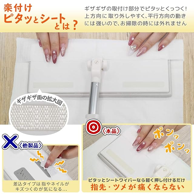 ピタッと押し付けるだけ!シートの取り外しが超簡単な新しい取り付け方法です。