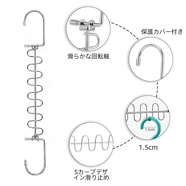 耐久性に優れたステンレス素材 高品質ステンレスを採用し、錆びにくく丈夫で長持ち。プラスチック製品よりも頑丈で、変形しにくいのが特徴です。ホルダー部分もしっかりしており、重い衣類も安心して掛けられる収納力アップハンガー。