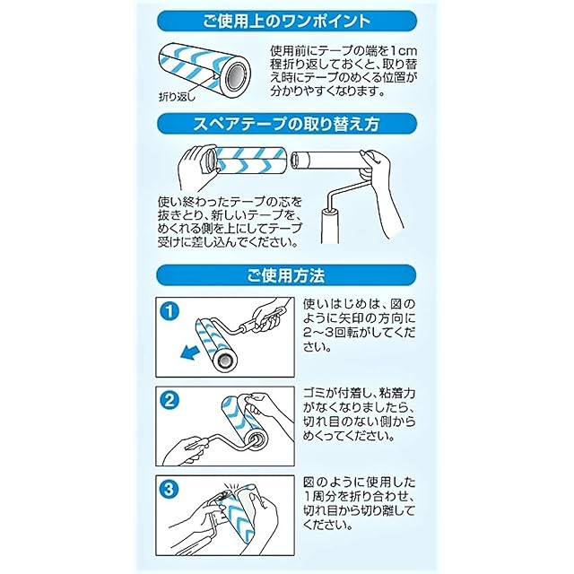 粘着ローラーのスペアテープ 90周巻 3個入