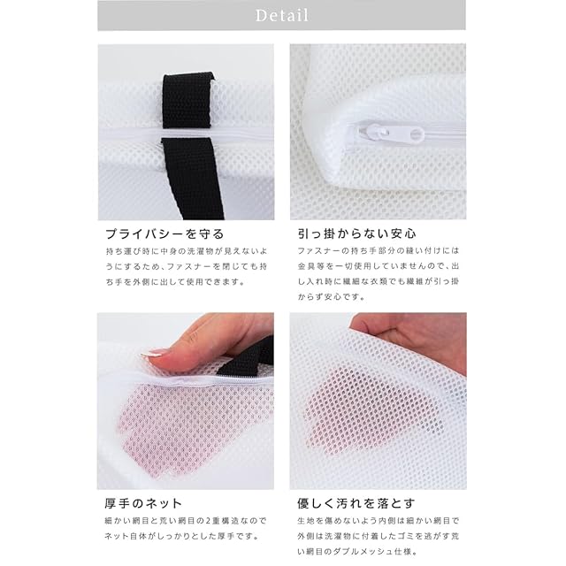 メッシュ生地は中身の洗濯物が見えにくいダブルメッシュ仕様で外出にも使用できます。