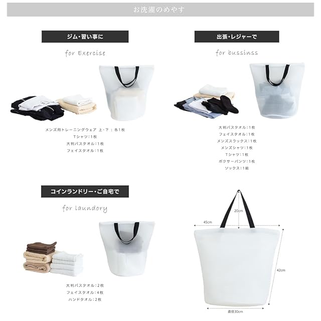 サンゴ 洗濯ネット Mサイズ 取っ手付き コインランドリー用 洗濯入れる袋 毛布が洗える 白 ホワイト 黒 ブラック モノトーン ランドリーバッグ 幅45×高さ44×マチ30cm トートバッグ 持ち運びに便利 温泉 スパ サウナ ランドリーネット まとめ洗い BYT1019372