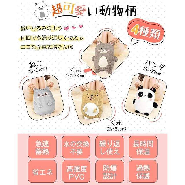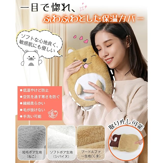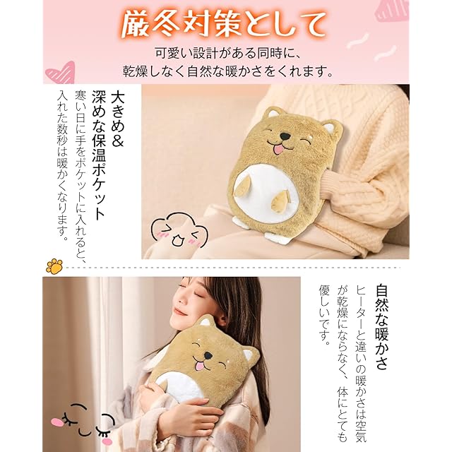 湯たんぽ 充電式 電気湯タンポ エコ【4~10H長時間保温・保温ポケット付き】ゆたんぽ 蓄熱式 省エネ お湯の交換不要 ふわもこカバー付き 低温やけど防止 防爆保護 過熱保護 可愛い動物柄 暖房器具 防寒対策 あったかグッズ お年寄り/子供/ペット用 指先/手/腹/足元/肩/腰用 シバイヌ