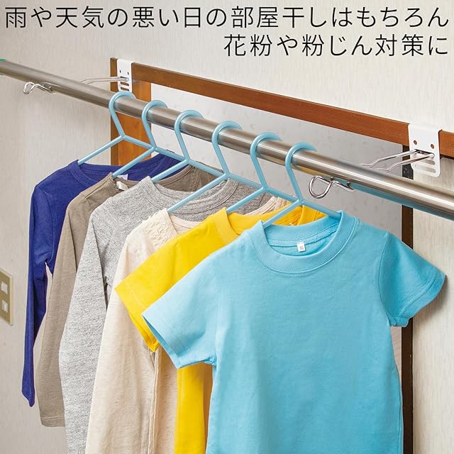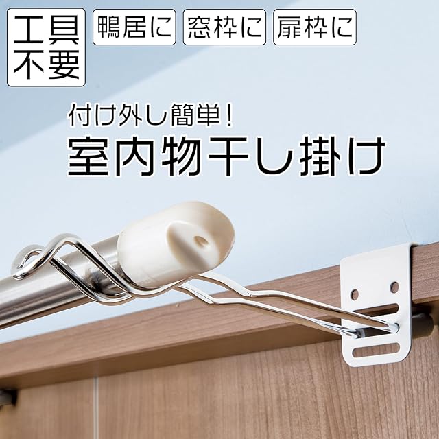 工具不要で、鴨居(ふすま枠)・扉枠・窓枠にサッと引っ掛けて設置する室内用物干し掛け ネジ・釘不要なのでキズがつきにくい (気になる方はお手持ちのマスキングテープや薄手の緩衝材を挟むことをお勧めします)