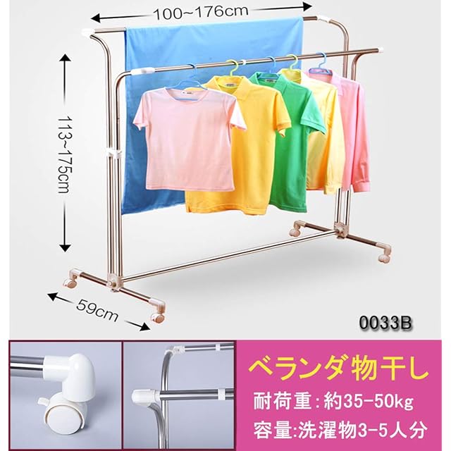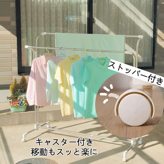 BAOYOUNI ベランダ物干し 物干しスタンド キャスター付 特大洗濯物干し ステンレス巻きパイプ防錆処理 布団干し ベランダ 室外 室内物干し 物干しスタンド 物干し台
