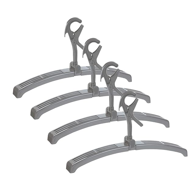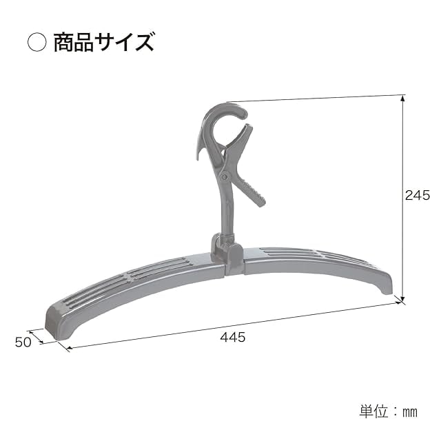 【トレーナーが乾きやすいハンガー】<br>幅広のアームでトレーナーを立体的に干すことで、内部に空間ができるのでトレーナーが乾きやすくなります。<br>アームにも通気用の穴が開いているので早く乾きます。<br><br>【スライド式で肩幅フィット】<br>アームがスライド式で伸び縮みするので、肩幅サイズがほどよく合わせられます。<br>肩ラインにそったカーブで、トレーナーが型崩れせずきれいに干せます。<br><br>【キャッチ式でしっかり固定】<br>竿にかける部分はしっかりしたキャッチ式。風でハンガーが移動したり飛ばされてしまうのを防ぎます。<br><br>【すっきり収納】<br>アームを縮めてキャッチ部分を折りたたむとコンパクトに収納できます。<br><br>【商品詳細】<br>セット内容:4本組(グレー) / 材質:(本体)ポリプロピレン(バネ)鋼線 / 原産国:日本<br><br>