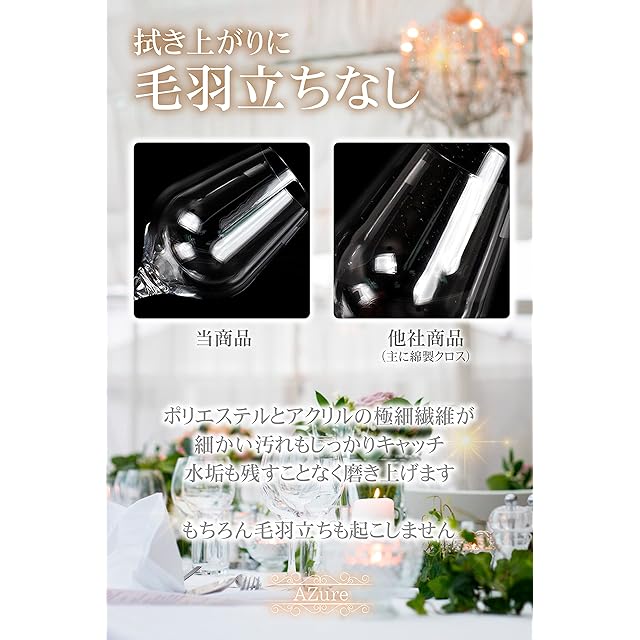 ✅【使い勝手にこだわりを】グラスをピカピカに拭き上げるのに最適なグラスふき用クロスです。高品質なポリエステルとアクリル繊維のマイクロファイバークロスで、繊維の残りくずが着くことなくグラスをピカピカに磨き上げます。(主に拭き上げを目的としたグラスふき用クロスです。濡れたグラスの水分吸収には適しません。)
