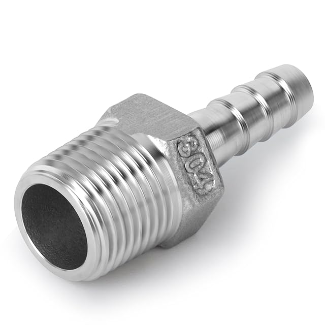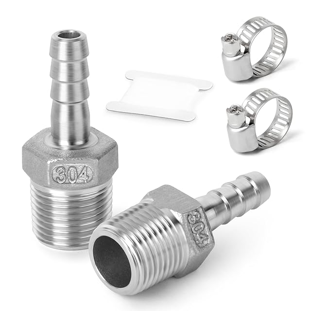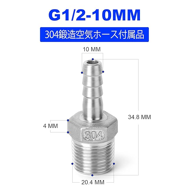 TAILONZ 2個ステンレスホースバーブ継手、304鍛造雄ネジパゴダG1/2-10mm、2ホースクランプ付き