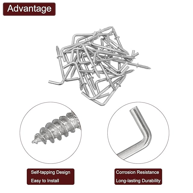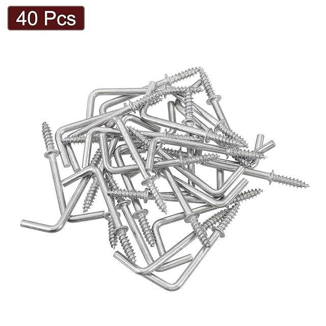 uxcell 洋折釘 全長46mm 40本入 直角フック ネジフック L字金具 炭素鋼 建設 ガーデニング用 シルバー