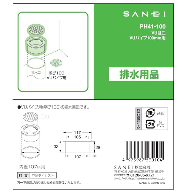 SANEI(サンエイ) 排水部品 VU目皿 カギ式 呼び100 亜鉛ダイカスト PH41-100