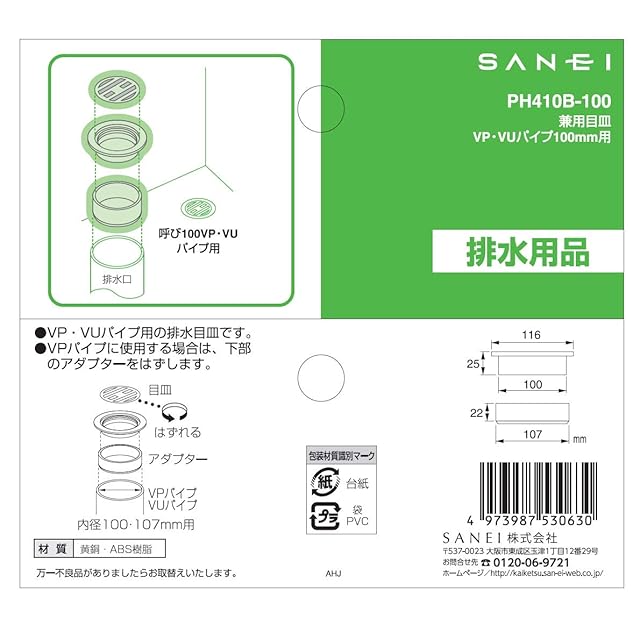 SANEI(サンエイ) 【VU・VPパイプ兼用目皿】呼び100配管用 PH410B-100