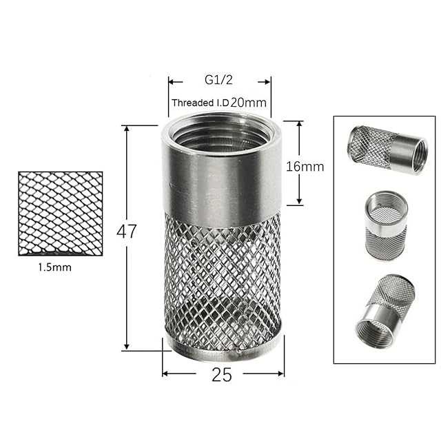 【素材】: ホースインレットストレーナーは304ステンレス鋼で作られており、耐久性と長寿命をします。