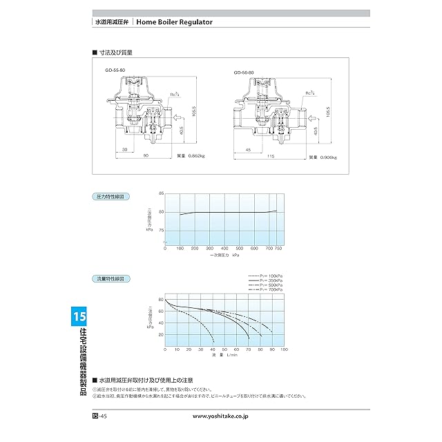 ヨシタケ 水道用減圧弁 一般用 標準設定圧力80KPa ねじ込み接続 接続口径20A 本体CAC 最高温度60℃ 型式GD-56-80 20A