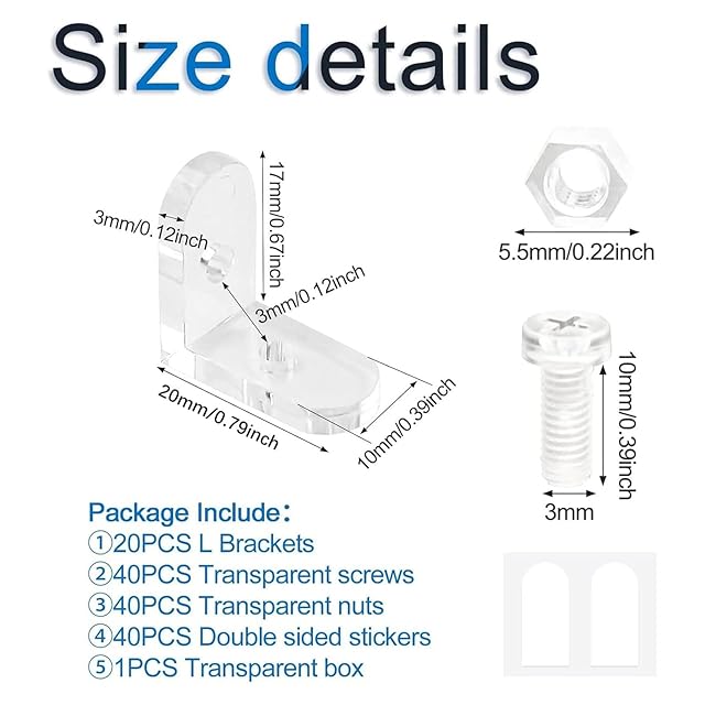 [幅広い用途]: 直角ブラケットは余分なスペースの四隅に固定できます。, そして、パーティションや収納ボックスを置いて固定することができます. 小さなブラケットを使用してアクリル板を固定できます, アクリルディスプレイフレームを組み立てる, と他の好きな場所.