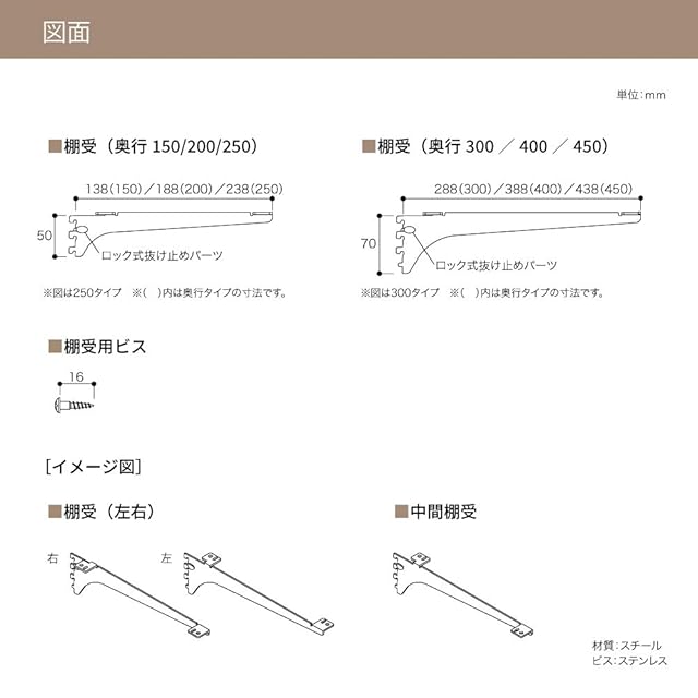 商品名:南海プライウッド アームハング棚柱SS 棚受(木質棚板用) SSブラック 奥行200mmタイプ 2本入(ビス付) SS-MD20B