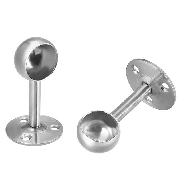uxcell ワードローブレールサポート ワードローブパイプブラケット ウォールマウント 304ステンレススチール 高さ95mm 直径32mm 2個入り