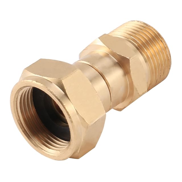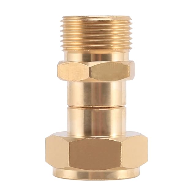YYDE サイズ:M22 14mmスレッドのフィッティング<br />メトリックM22 14mmオス+ M22メススイベル。<br />ユニバーサル圧力ワッシャーカプラーは、高品質の真鍮で作られており、耐腐食性があります。<br />作動圧力は最大3000 PSI、作動温度は最大140°F<br />応用:<br />高圧洗浄機用のもつれないスイベルジョイントです。スプレー時のホースのねじれとよじれを解消します。<br />360度の回転。ガン、ホース、オペレーターへのストレスを軽減します。<br />警告:圧力ワッシャーによって発生する高圧放電により重傷を負う可能性があります。人体の手の届かないところに保管してください。<br />色:銅の色<br />素材:真鍮<br />パッケージ内容:<br />1 x もつれないスイベルジョイント<br />パッケージの内容は以上です、ほかの産品はここに含まれていません。<br />注:光撮影やディスプレイによって、実際の商品の色やサイズとウェブサイトの色やサイズが若干異なる場合があるかもしれません。また測定許容誤差の範囲は1-3cmです。