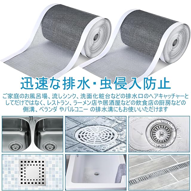 排水溝カバー 髪の毛取りネット 2巻セット 粘着式 幅70/100/120mm ヘアキャッチャー 長方形 使い捨て 交換可能 シャワー 排水口カバー 虫対策 地漏れシール 洗面所 排水溝 キッチン 浴室 洗面台 お風呂用 (幅70 mm*長さ10 m)