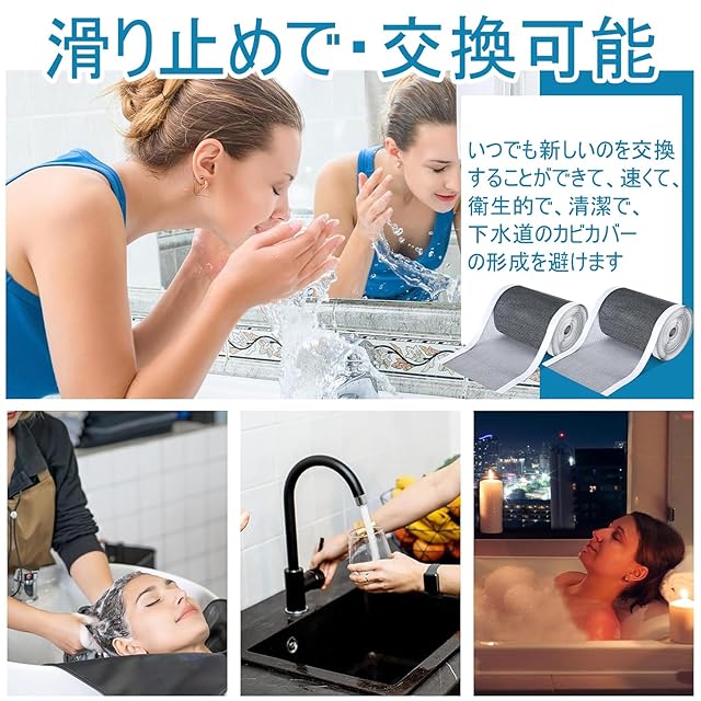 商品名:排水溝カバー 髪の毛取りネット 2巻セット 粘着式 幅70/100/120mm ヘアキャッチャー 長方形 使い捨て 交換可能 シャワー 排水口カバー 虫対策 地漏れシール 洗面所 排水溝 キッチン 浴室 洗面台 お風呂用 (幅100 mm*長さ10 m)