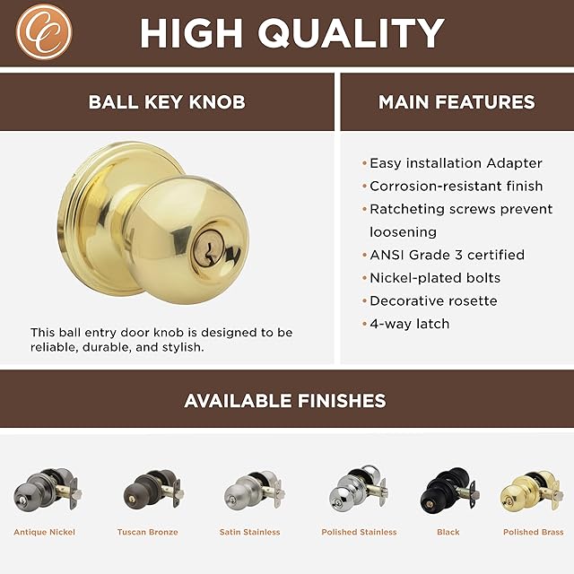 ANSI グレード3 セキュリティキー入りエントリーボールノブ