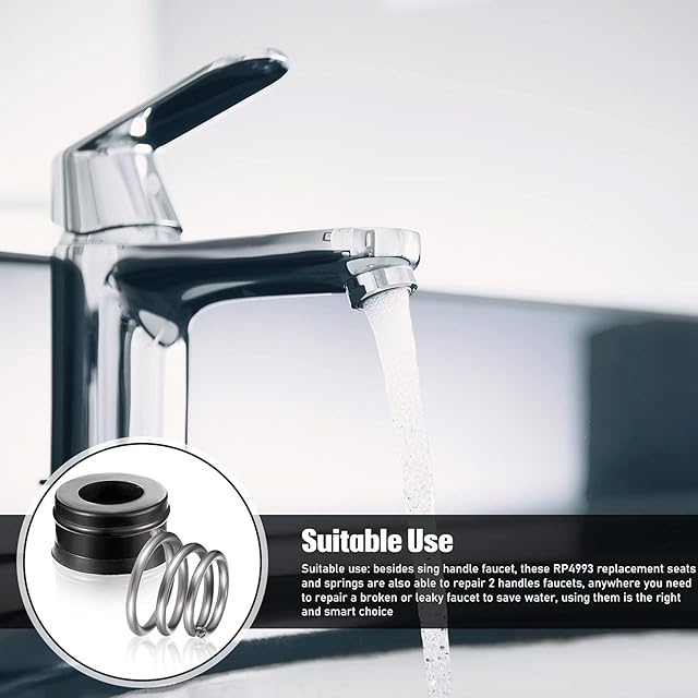 パッケージ内容:RP4993シート4個とスプリング4個、合計8個(4セット)の蛇口ステムアセンブリ修理部品、長期間使用するのに十分な量です。