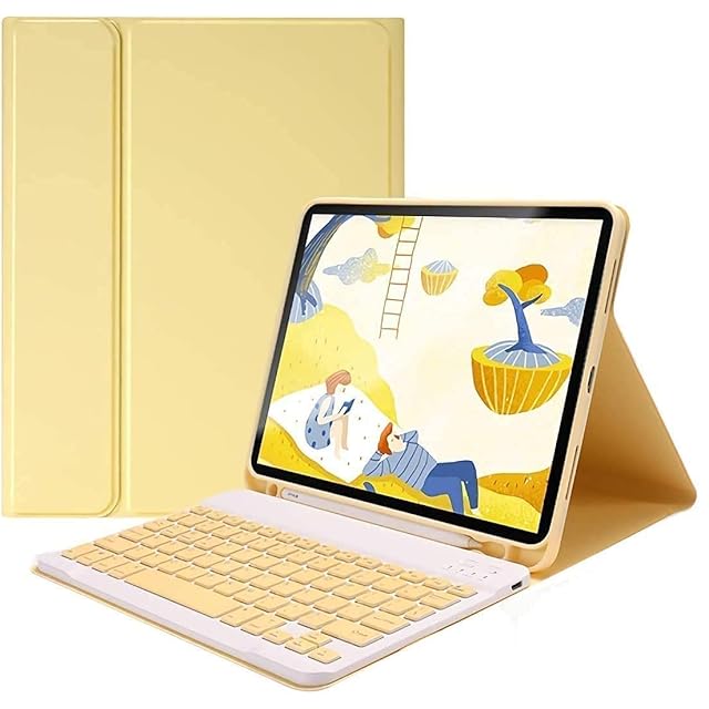 iPad Air 11インチ (M3,M2) キーボードケース キャンディー色 iPad Air 第5/4世代 10.9インチ キーボード 分離式 女性 人気 アイパッド Air5 Air4 カバー カラフル 可愛い レディース,イエロー
