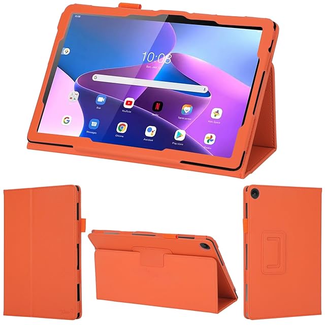 wisers Lenovo Tab B10 (3rd Gen) 専用 タブレットケース (オレンジ) 10.1インチ 対応 (タッチペン/保護フィルム 付き/スタンドタイプ) タブレットカバー 2023 新型