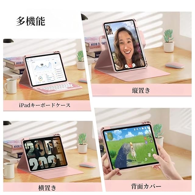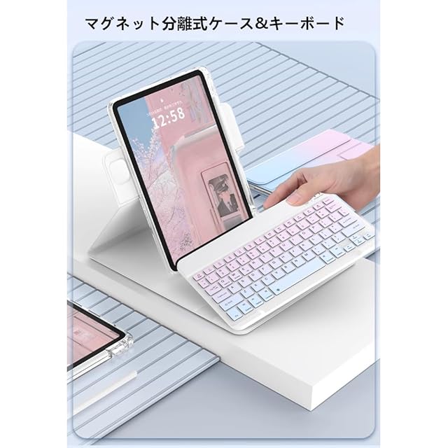 ✅2024年最新デザイン、 ワイヤレスキーボード 、グラデーションカラー付きキートップがお洒落可愛い、人気グラデーションカラーキーボードケース、カラーバリエーション豊富。 ケースの表面はPUレザー素材を利用して、軽量、超薄を備えます。ポリカーボネート素材を採用している透明バックカバーは汚れや傷つけなどを防止するだけでなく、iPad本体の色と美しさも活かせます。