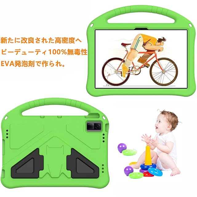 「Doo」Lenovo Tab7 A301LVタブレットケース 2023年 レノボタブレット タブ7 10.6インチ カバー スタンド機能 ハンドル付き 持ちやすい EVA素材 取付簡単用 Lenovo Tab7 耐衝撃カバー 子ども用(グリーン)
