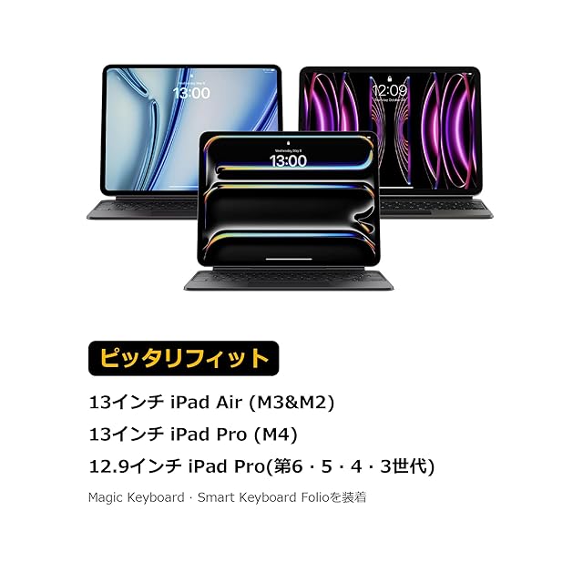 対応機種:13インチ iPad Air M3 2025 M2 2024 | 13インチ iPad Pro M4 2024 | 12.9インチ iPad Pro 第6/5/4/3世代 M2/M1 2022-2018 にMagic Keyboard / Smart Keyboard Folioまたは他のApple Pencil付きのケースを装着した場合に対応。キーボード付きの12.3インチ Microsoft Surface Pro X / 7 / 6 / 5 / 4 / 3 / 2 / 1にも対応。タブレット収納部内寸: 303 x 246 x 19mm。ご注意:本商品はタブレットケースのみです。iPadデバイスおよびアクセサリーなどは商品内容物に含まれておりません。