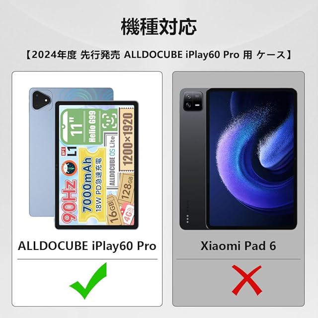 【適用機種】:ALLDOCUBE iPlay60 Pro モデルに設計した専用スマートカバーとなります。他の機種に対応出来ません。ご購入前に機種をご確認ください。