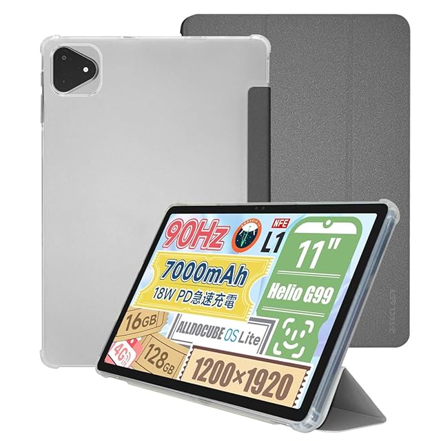 【2024年度 LAZIRO新登場】ALLDOCUBE iPlay60 Pro タブレット 11インチ用 ケース ALLDOCUBE iPlay60 Pro カバー 軽量 薄型 耐衝撃 傷つけ防止 三つ折りブラケット機能 角度調整 保護カバー(グレー)