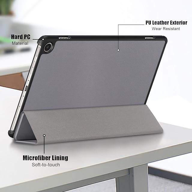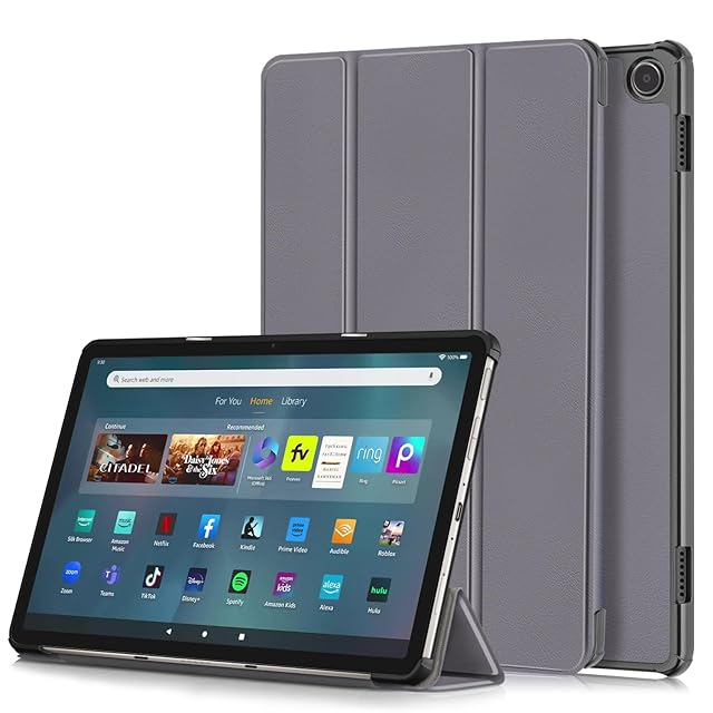 For Fire MAX 11(2023年発売) タブレット ケース 指紋防止 全面保護型 軽量三つ折 薄型 耐衝撃 傷つけ防止 スタンド機能 Fire MAX 11 ケース カバー(グレー)