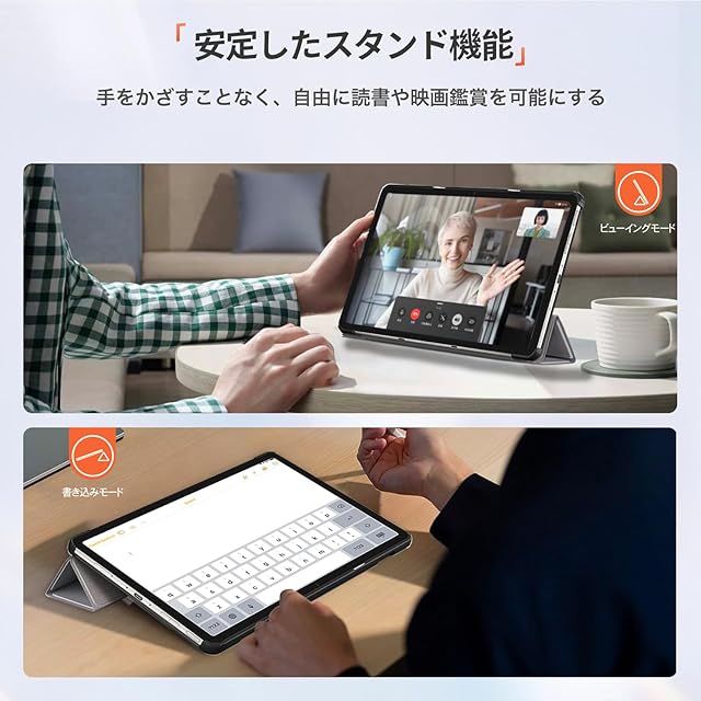 【完璧なデザイン】本製品はタブレット端末を完全に保護する専用ケースで、ケースを装着したまま電源ボタン、音量ボタン、写真撮影、充電などすべての機能を使用することができます。 さらに、スタンド機能も搭載しています。